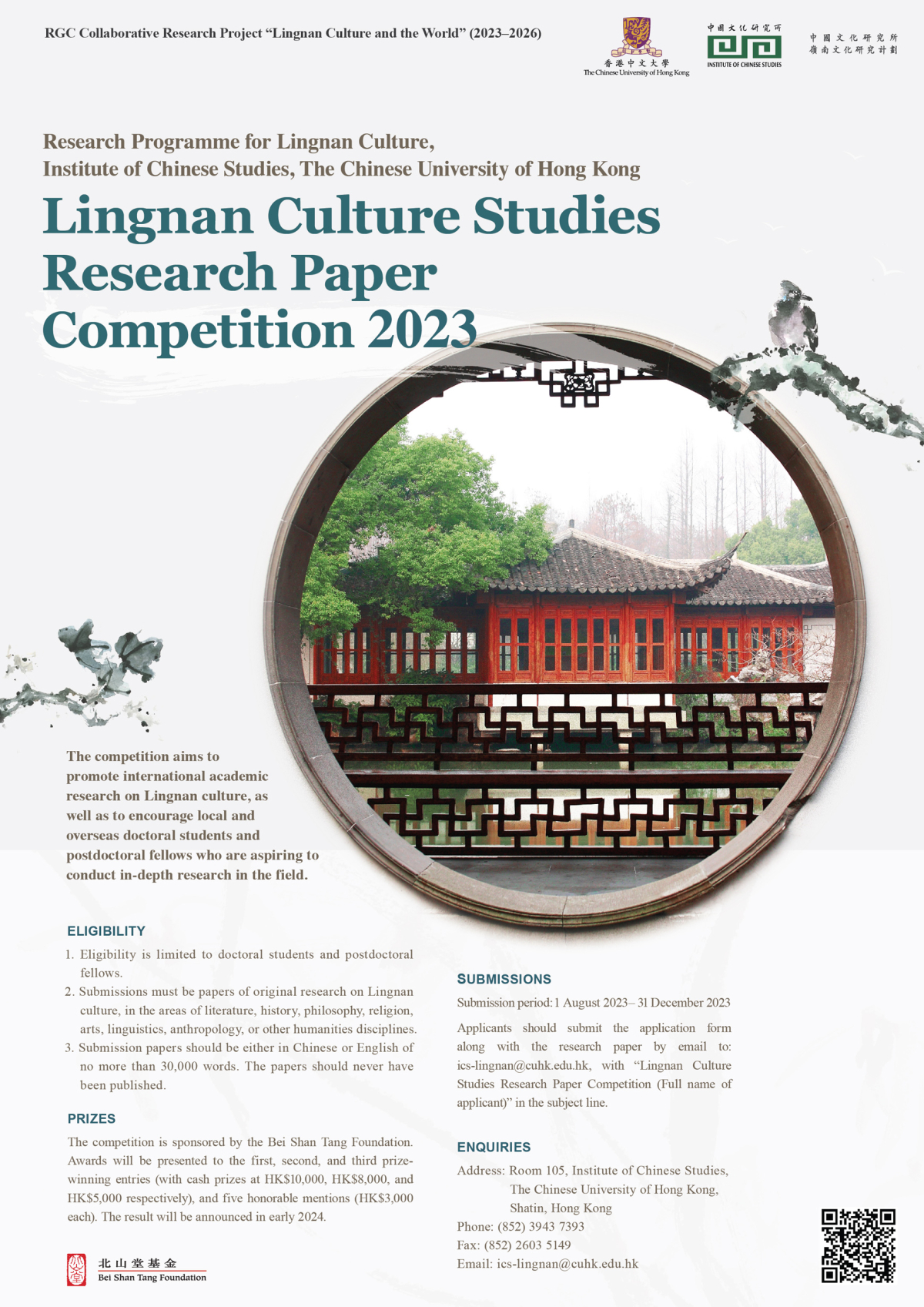 The Competition aims to promote international academic research on Lingnan culture, as well as to encourage local and overseas doctoral students and postdoctoral fellows who are aspiring to conduct in-depth research in the field.