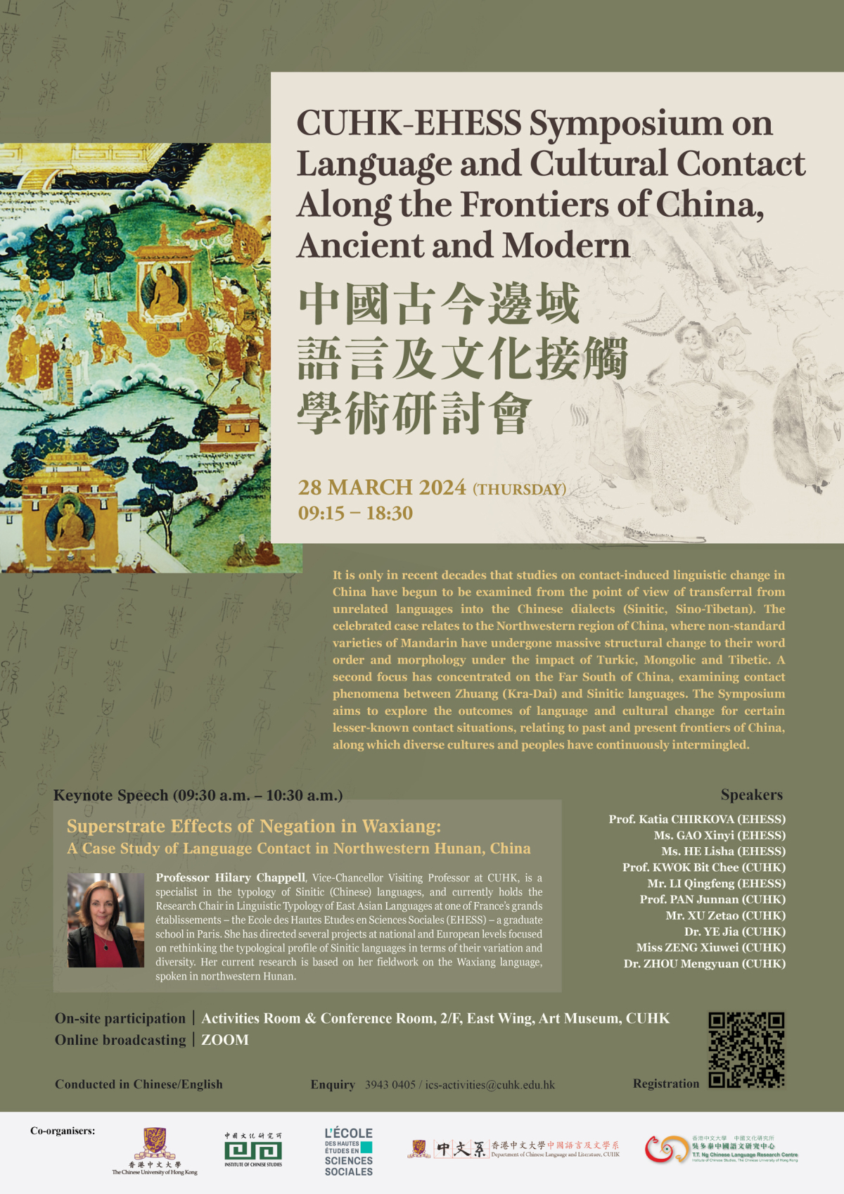 It is only in recent decades that studies on contact-induced linguistic change in China have begun to be examined from the point of view of transferral from unrelated languages into the Chinese dialects (Sinitic, Sino-Tibetan). The celebrated case relates to the Northwestern region of China, where non-standard varieties of Mandarin have undergone massive structural change to their word order and morphology under the impact of Turkic, Mongolic and Tibetic. A second focus has concentrated on the Far South of China, examining contact phenomena between Zhuang (Kra-Dai) and Sinitic languages. The Symposium aims to explore the outcomes of language and cultural change for certain lesser-known contact situations, relating to past and present frontiers of China, along which diverse cultures and peoples have continuously intermingled.