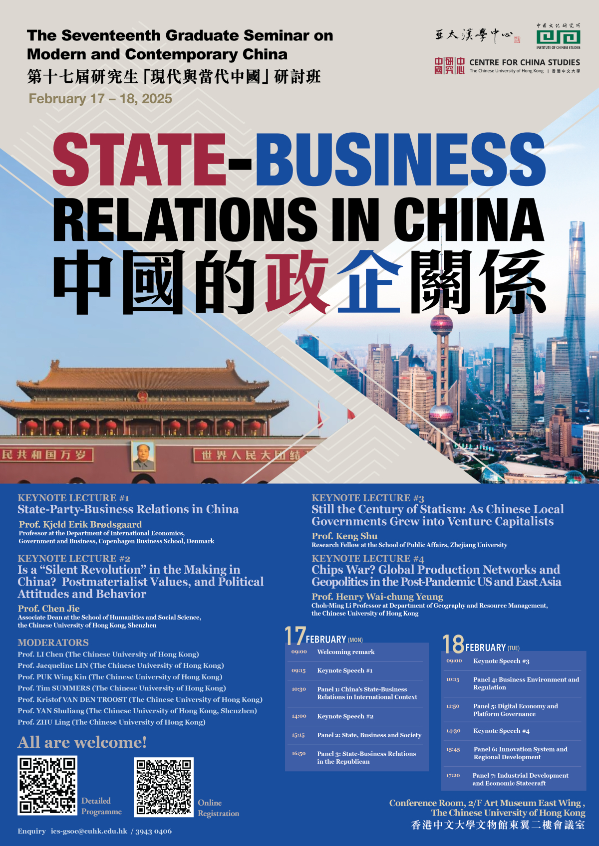 The Seventeenth Graduate Seminar on Modern and Contemporary China is co-organised by the The Chinese University of Hong Kong-Chiang Ching-kuo Foundation Asia-Pacific Centre for Chinese Studies, the Institute of Chinese Studies and the Centre for China Studies.