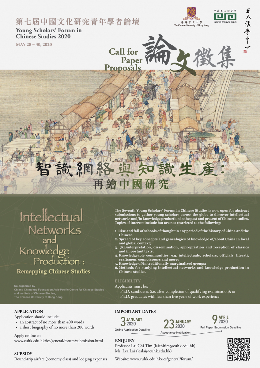 Young Scholars’ Forum in Chinese Studies 2020 - Call for Paper Proposals(Online Application Deadline: 3 January 2020)