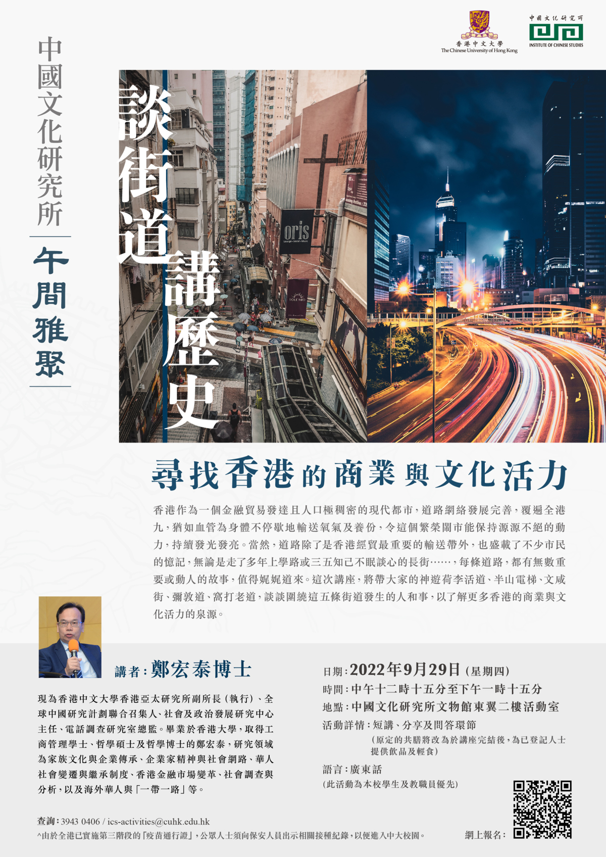 Venue: Activities Room, 2/F, Art Museum East Wing, Institute of Chinese Studies
