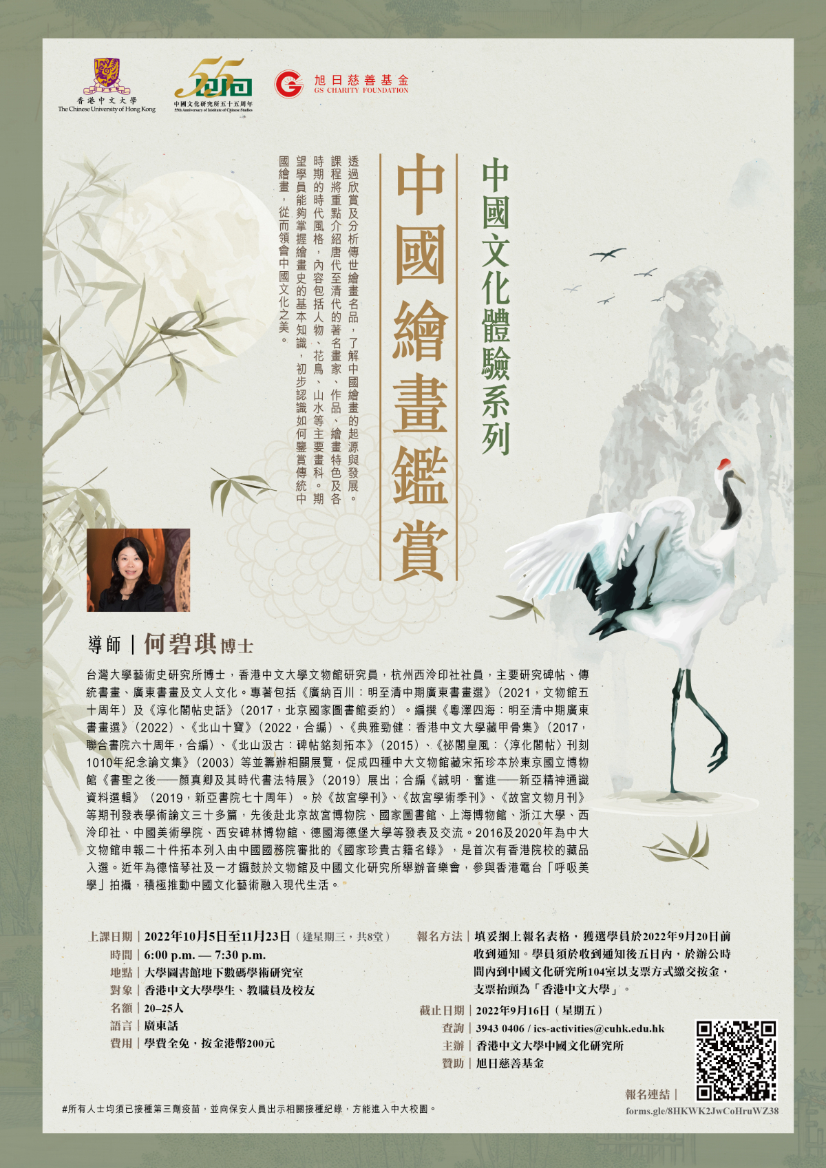 The Institute of Chinese Studies will commence to launch the Experiencing Chinese Culture Series in the new academic year. The workshop “Appreciation of Chinese Painting”, delivered by Dr. Peggy Ho, is now open for registration. This workshop will be conducted in Cantonese.